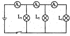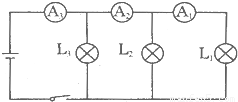 如图所示,电流表A1的示数为0.18A,电流表A2的示数为0.58A,通过灯泡L3的电流为0.3A,求: (1)通过灯泡L1和L2的电流各是多少?(2)电流表A3读数是多少?