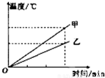 两个相同的容器中分别装满了质量相同的甲、乙两种液体.用同一热源分别加热,液体温度与加热时间关系如图所示.