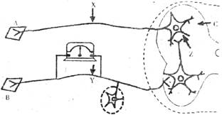 (2)假设图甲C处连接一块受到刺激可以收缩的肌肉,并在图示处剪断传出神经,刺激A端肌肉 (能、不能)收缩;刺激B端肌肉 (能、不能)收缩。若刺激剪断处的某一端出现收缩活动,该活动 (能、不能)称为反射活动,主要原因是 (2分)。