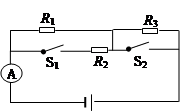 如图所示,电源电压保持不变,S1和S2是两个可以同时断开或同时闭合的联动开关,已知R1=12Ω。当两个开关同时处于某一工作状态(断开或闭合)时,R3的功率P3为2.25W,当两个开关同时处于另一个工作状态时,电流表的示数为2A,此时R2的功率P2为12W,求:![]()