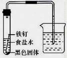 查看习题详情和答案>>某化学兴趣小组的同学将一枚洁净的铁钉放入食盐水中(如图,装置气密性良好),一段时间后,发现装置中右侧导管中的液面升高,铁钉生锈,试管底部有黑色固体物质。