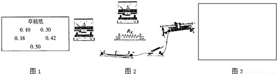 在测量某一定值电阻Rx阻值的实验中,张楠同学选定了如图所示的器材进行实验.实验过程中,由于李骅同学的疏忽,做完实验后他才发现,把测量的电流值都写在草稿纸上而忘记填人记录表格中。