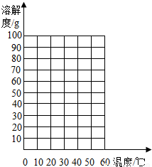 | 温度/℃ | 0 | 20 | 40 | 60 | |