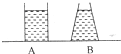 如图所示,放在水平桌面上的容器A为圆柱形,容器B为圆锥形,两容器本身的质量和底面积都相同,装入深度相同的水后,再分别放入相同质量的木块,如图所示,下列说法中正确的是:( )