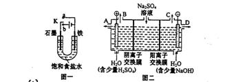 (2)芒硝(化学式为Na2SO4·10H2O),无色晶体,易溶于水,是一种分布很广泛的硫酸盐矿物。该小组同学设想,如果模拟工业上离子交换膜法制烧碱的方法。用如图二所示装置电解硫酸钠溶液来制取氢气、氧气、硫酸和氢氧化钠,无论从节省能源还是提高原料的利用率来看都更加符合绿色化学理念。