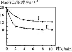 (4)将一定量的Na2FeO4投入到pH不同的污水中(污水中其余成分均相同),溶液中Na2FeO4浓度变化如图曲线Ⅰ、Ⅱ所示,试推测曲线Ⅰ比曲线Ⅱ对应的污水pH