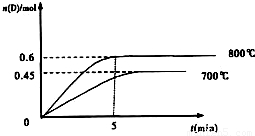 在不同温度下,D的物质的量n(D)和时间t的关系如图
