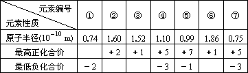 (3)现有下列短周期元素性质的数据: