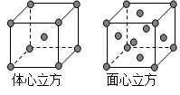 (5)金属铁的晶体在不同温度下有两种堆积方式,晶胞分别如图所示。则体心立方晶胞和面心立方晶胞中实际含有的Fe原子个数之比为 ;若两种晶体中最邻近的铁原子间距离相同,则体心立方晶胞和面心立方晶胞的密度之比为 。![]()