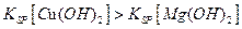 Cu(OH)2沉淀,说明Ksp[Cu(OH)2]> Ksp[Mg(OH)2]