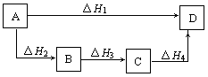 | C.△H1+△H2+△H3=△H4 | D.△H1=△H2+△H3+△H4 |