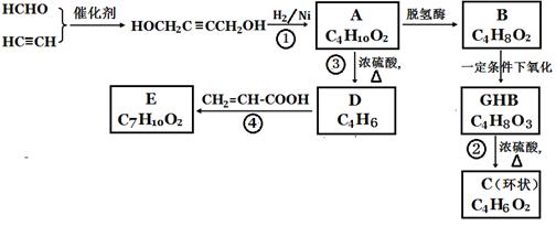 ,化合物A在体内脱氢酶的作用下会氧化为有害物质GHB。下图是关于化合物A的一种制备方法及由A引发的一系列化学反应。![]()