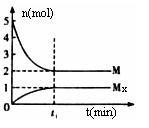 Mx(g),反应物和生成物的物质的量随时间的变化关系如下图。下列说法正确的是 ( )