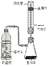 (2)如图所示,将硬质玻璃管改装为燃烧管。挤压软塑瓶壁,向装有固体B的锥形瓶中加入溶液A,同时往燃烧管中通入气体C并点燃,可看到明显的燃烧现象(金属网用以防止气体混合爆炸)。