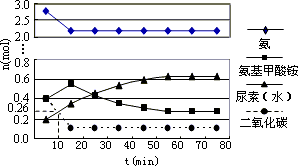 某实验小组模拟工业上合成尿素的条件,在一体积为0.5 L密闭容器中投入4 mol氨和l mol二氧化碳,实验测得反应中各组分随时间的变化如下图I所示: