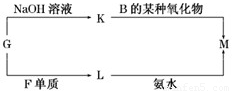 其中化合物M是一种白色胶状沉淀,则M为(填化学式)______;K的溶液与B的某种氧化物反应的化学方程式为______;一种新型无机材料由G元素和C元素组成,其化学式为______.
