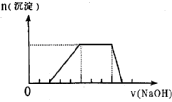 (8分)某溶液中可能含有H+、Na+、NH4+、Mg2+、Fe3+、Al3+、SO42-等离子,当向该溶液中加入某浓度的NaOH溶液时,发现生成沉淀的物质的量随NaOH溶液的体积变化如图所示,由此可知,该溶液中肯定含有的阳离子是________,且各离子的物质的量之比为_______;肯定不含的阳离子是_______________,判断的理由是 。![]()
