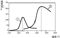 如图,采用NH3作还原剂,烟气以一定的流速通过两种不同催化剂,测量逸出气体中氮氧化物含量,从而确定烟气脱氮率,反应原理为:NO(g)