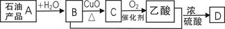 已知:含C=C的物质(烯烃)一定条件下能与水发生加成反应,生成醇(含羟基的烃的衍生物);有机物A-D间存在图示的转化关系.
