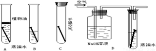 铜锈的主要成分是碱式碳酸铜,为了验证铜生锈的条件,某校化学兴趣小组的成员进行了如下的实验.一个月后,才发现B中的铜丝慢慢生锈,且水面处的铜丝生锈较为严重,而A、C、D中的铜丝基本无变化