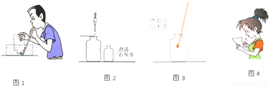 某校研究性学习小组的同学设计了简单的实验方案.验证呼出的气体与吸入的空气成分的含量有什么不同,其主要操作步骤如下图所示: