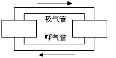 2004年12月23日,重庆开县发生了震惊世界的井喷事件,造成了200多人死亡的悲剧。井喷产生的剧毒气体H2S是通过呼吸道等途径进入人体的。因此,在事故现场必须穿戴防护衣和防毒面具。有一种生氧防毒面具,它由面罩、生氧罐、呼气管和吸气管等组成。使用时,人体呼出的气体经呼气管进入生氧罐,干燥后,二氧化碳与罐中的过氧化钠反应,产生氧气和碳酸钠,氧气沿吸气管进入面罩。请在下图的方框中补充上述防毒面具的工作原理图,并写出产生氧气的化学方程式。