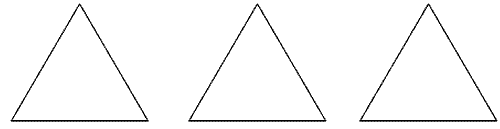 正三角形给人以“稳如泰山”的美感,它具有独特的对称性,请你用三种不同的分割方法,将以下三个正三角形分别分割成四个等腰三角形(在图中画出分割线,并标出必要的角的度数),观察其中各有哪些全等三角形.