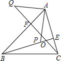 如图,BE、CF是△ABC的高,它们相交于点O,点P在BE上,Q在CF的延长线上且BP=AC,CQ=AB,