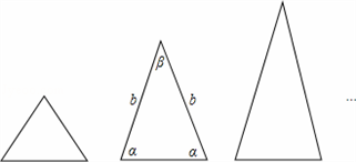 摘要:如图, 这些等腰三角形与正三角形的形状有差异.我们把它与正三角形的接近程度称为“正度 .在定义“正度 时.要求“正度 的值是非负数, 而且保证相似三角形的“正度 相等. 设等腰三角形的底和腰分别为a.b.底角和顶角分别为.. 同学甲认为:可用式子来表示“正度 .的值越小.表示等腰三角形越接近正三角形, 同学乙认为:可用式子来表示“正度 .的值越小.表示等腰三角形越接近正三角形. 探究:(1)他们的方案哪个较为合理.为什么? (2)对你认为不够合理的方案.请加以改进, (3)请再给出一种衡量“正度 的方案.
