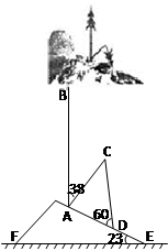 2011年3月11日13时46分日本发生了9.0级大地震,伴随着就是海啸。山坡上有一棵与水平面垂直的大树, 海啸过后,大树被刮倾斜后折断倒在山坡上,树的顶部恰好接触到坡面(如图所示)。已知山坡的坡角∠AEF=23°,量得树干的倾斜角为∠BAC=38°,大树被折断部分和坡面所成的角∠ADC=60°,AD=4m。