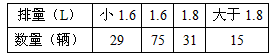 | 排量(L) | 小1.6 | 1.6 | 1.8 | 大于1.8 |