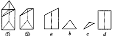 图①是一个正三棱柱毛坯,将其截去一部分,得到一个工件如图②.对于这个工件,主视图、俯视图依次是________.
