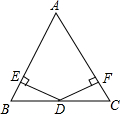 如图:已知△ABC中,AB=AC,D是BC的中点,过D作DE⊥AB,DF⊥AC,说明AE=AF的理由.