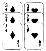 如图,是从一副扑克牌中取出的两组牌,分别是红桃1,2,3和方块1,2,3,将它们的背面