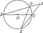 (2002•大连)如图,BC为⊙O的直径,弦BD和弦EC的延长线相交于点A,△ADE和△ABC的面积之比为3:4,则∠BAC的度数为