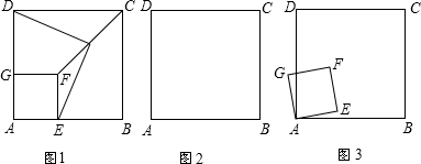 (3)把(1)中的正方形AEFG绕点A任意旋转某个角度(如图3),试按题意把图形补画完整,并研究(1)中的结论是否仍然成立.