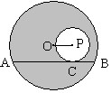 如图,⊙P内含于⊙O,⊙O的弦AB切⊙P于点C,且AB∥OP,若阴影部分的面积为10π,则弦AB的长为( )。