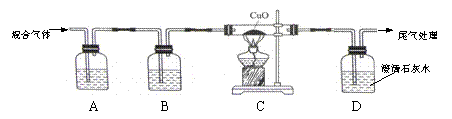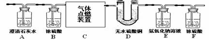 20.(08山东青岛)某无色气体中可能含有甲烷、一氧化碳、二氧化碳、氮气中的一种或几种,现将该气体依次通过下图所示装置,观察到:①A装置内未见有浑浊出现;②D装置内无水硫酸铜变蓝(无水硫酸铜遇水变蓝);最终收集到一定量干燥气体(假设每步反应都是完全的)。