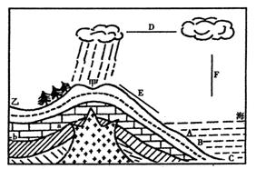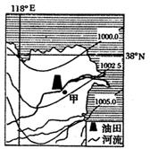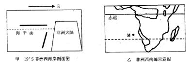 (3)该地区位于__________气压带与_________气压带之间,盛行风向为_________,受此风的影响,海水会发生运动,在图甲上画出该海域海水水平运动和垂直运动的示意图。(4分)