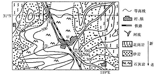 8.图示①、②、③、④处中,最适宜建水库大坝的是: