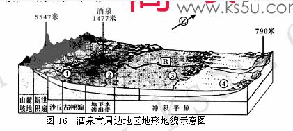 (1)描述图14甲图中所示区域主要地形区的分布状况。(6分)
