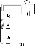 已知管内水银柱的高度h为8cm,若大气压强为75cmHg、室温为27℃时,空气柱长度L1为20cm,水银柱上表面与导线下端的距离L2为10cm。则该报警器的报警温度为多少℃?