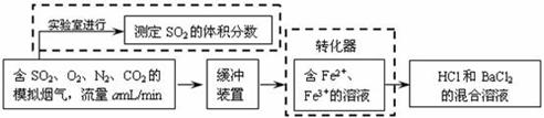 (2)有学者提出利用Fe2+、Fe3+等离子的催化作用,常温下将SO2氧化成SO42-而实现SO2的回收利用。某研究性学习小组设计如下方案,在实验室条件下测定转化器的脱硫效率。