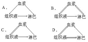 51.人体内的血浆、组织液和淋巴三者间的物质联系正确的表达是