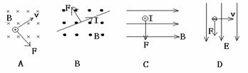如图9所示,关于安掊力、洛伦兹力和电场力的方向判断正确的是