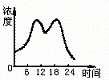 开放小树林中晴天一天内CO2浓度的 变化 |