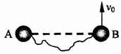 19.质量相等的两小球A、B由不可伸长的细绳相连放在光滑水平面上,绳处于松驰状态,现给B一个垂直AB连线的水平速度v0,小球B开始运动,当绳子绷直的瞬间,下面那个说法是错误的( )