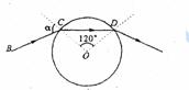 如图所示,真空中有一个半径为R、质量分布均匀的玻璃球.频率为γ的细光束在空中沿直线BC 传播,于C 点经折射进入玻璃球,并在玻璃球表面的D点又经折射进入真空中,已知∠COD 二1 20° ,玻璃球对该激光的折射率为