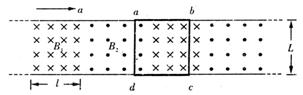 21、在水平面上相距L的两根平行直导轨间,有竖直方向等距离分布的匀强磁场B1和B2,且B1=B2=B,每个磁场的宽都是l,相间排列,所有这些磁场都以加速度