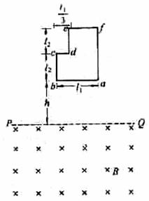 ,bc、de边长均为l2。ab边正下方h处有一单边有界匀强磁场区域,其水平边界为PQ,磁感应强度为B,方向垂直于纸面向里。使线框从静止开始下落,下落过程中ab边始终水平,且cd边进入磁场前的某一时刻,线框已开始匀速运动,重力加速度为g,不计空气阻力。